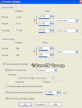 Afbeelding formaat wijzigen, breedte 450, vinkje bij hoogte breedte vergrendeling, formaat alle lagen.