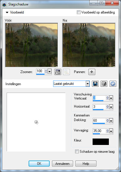 Effecten 3D effecten – slagschaduw.(zie printscreen)