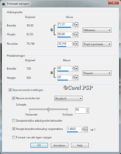 Formaat wijzigen met 70% herhaal dit nog 2 keer met 70% (zie screen)